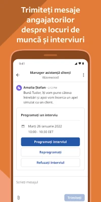 Odată găsit rolul perfect, Indeed simplifică întregul proces de aplicare. Puteți încărca cu ușurință CV-ul existent sau utiliza funcționalitatea de creare CV-uri a Indeed pentru a vă prezenta profesional. Salvați-vă profilul pentru a aplica rapid la multiple posturi, eliminând necesitatea de a reintroduce informațiile. Fiți mereu la curent cu statusul candidaturilor dumneavoastră printr-un sistem de urmărire intuitiv, care vă alertează când angajatorii v-au vizualizat sau au răspuns. De la momentul aplicării până la interviu, Indeed este alături de dumneavoastră, transformând aspirațiile profesionale în realitate. Indeed este dedicat sprijinirii parcursului dumneavoastră spre un nou capitol în carieră.