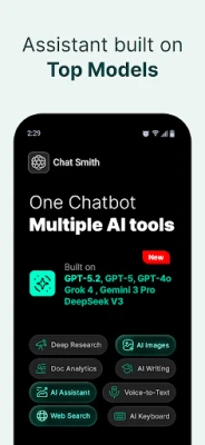 Descoperiți Chat Smith, partenerul dumneavoastră inteligent conceput pentru a vă amplifica productivitatea, a stimula creativitatea și a simplifica învățarea. Funcționând pe baza celor mai avansate modele de inteligență artificială, inclusiv GPT-5, Gemini 3, DeepSeek și Grok, această aplicație versatilă transformă modul în care interacționați cu informația și ideile. Fie că scrieți, explorați concepte complexe sau aveți nevoie de un sprijin rapid, Chat Smith este aliatul digital indispensabil care vă ajută să navigați eficient prin orice provocare.