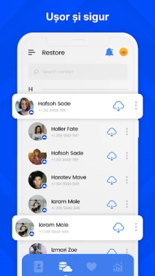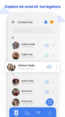 Descoperă un ecosistem complet de gestionare a contactelor, unde funcționalitatea se îmbină cu securitatea. **Backup-ul contactelor** îți oferă un seif digital personal, un loc unde fiecare număr de telefon, fiecare adresă de email este păstrată în deplină siguranță. Nu doar că poți restaura contacte șterse accidental cu o ușurință remarcabilă, dar ai și puterea de a le muta fluid între diverse dispozitive. Prin sincronizarea inteligentă, listele tale de contacte sunt accesibile și actualizate de oriunde, oricând, asigurându-ți controlul absolut. Pentru o confidențialitate sporită, aplicația include și o funcție de blocare, restricționând accesul neautorizat la informațiile tale sensibile. Importul și exportul de date devin astfel operațiuni securizate și lipsite de efort.