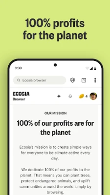 Confidențialitatea datelor tale este o prioritate absolută pentru Ecosia. Colectăm doar informațiile esențiale pentru a-ți oferi rezultate relevante, iar căutările tale sunt întotdeauna criptate, respectând principiul "copaci, nu date". În plus, Ecosia funcționează integral cu energie regenerabilă; propriile sale centrale solare generează chiar de două ori mai multă electricitate decât este necesar pentru a-ți alimenta căutările, contribuind activ la eliminarea combustibililor fosili din rețeaua energetică. Ca o companie steward-owned, non-profit, Ecosia își publică rapoartele financiare lunare, asigurând o transparență completă asupra impactului măsurabil al fiecărui click.