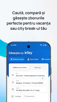 Nu mai rata nicio șansă de a călători economic! Cu funcția de Alerte de Preț, eSky te ține la curent cu fluctuațiile tarifelor pentru destinațiile tale favorite, în timp ce Notificările de Oferte te informează în timp real despre promoțiile exclusive către metropole vibrante sau locații exotice. Pentru o planificare completă, eSky îți propune pachetele integrate Zbor+Hotel – o soluție eficientă ce nu doar îți salvează timp prețios, dar adesea reduce costul total al vacanței comparativ cu rezervările separate. În plus, Garanția Prețului Mic îți oferă certitudinea că ai beneficiat de cea mai bună ofertă disponibilă.