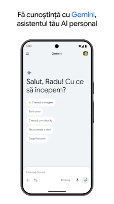 Transformă-ți interacțiunea digitală cu Gemini, companionul tău inteligent, propulsat de cele mai avansate modele Google AI, chiar pe telefonul tău. Gemini îți deschide porțile către o lume a posibilităților, permițându-ți să explorezi și să inovezi. Poți purta conversații dinamice pentru a-ți clarifica ideile, a demistifica subiecte complexe sau a te pregăti pentru momente cruciale. Prin funcția Gemini Live, ai libertatea de a discuta despre orice vezi, oferind acces la cameră sau ecran, transformând fiecare observație într-o discuție productivă și inspirată.